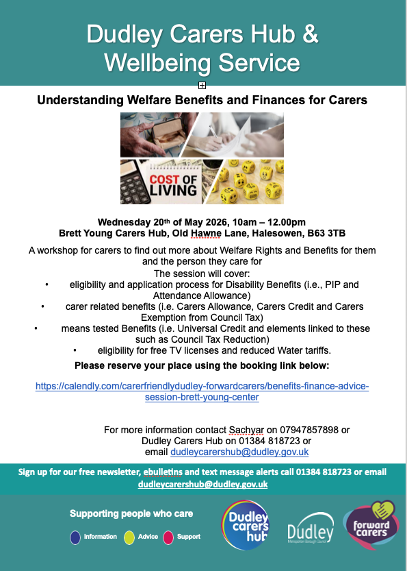 Brett Young Carers Hub, Old Hawne Lane, Halesowen, B633TBA workshop for carers to find out more about Planning for the Future for themselves and the person they care for. The session will cover: • Managing someone's affairs (Appointeeship, […]